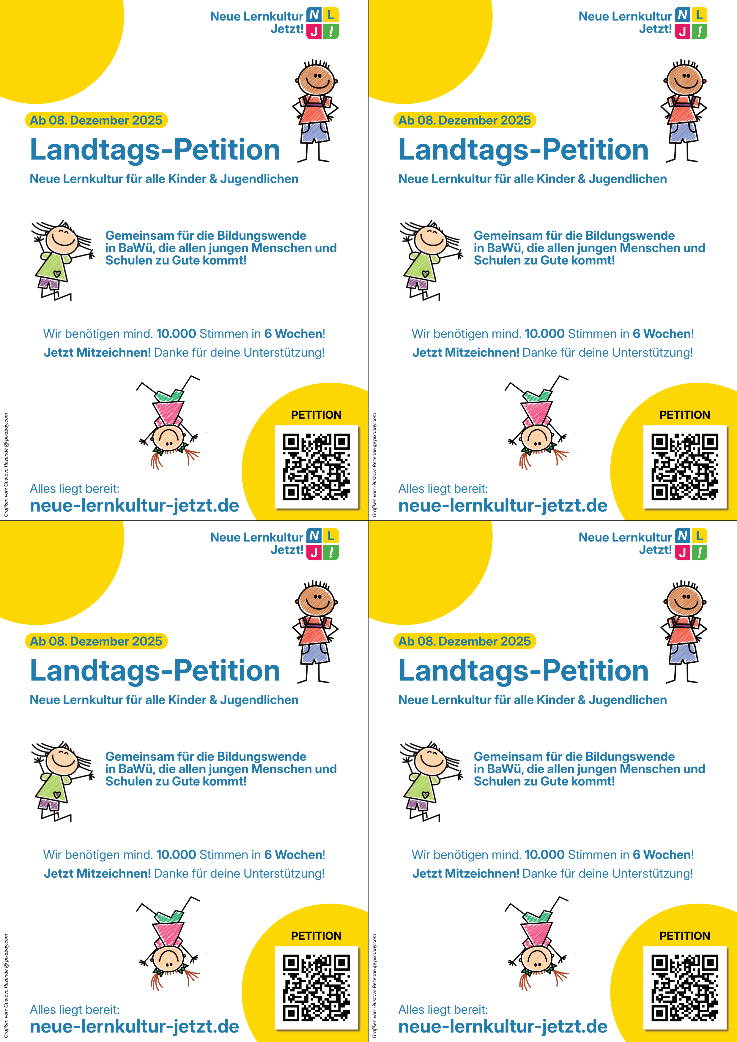 - Bist Du Elternteil eines Schulkindes und möchtest die Eltern der Klasse auf die Unterschriftensammlung der Landtags-Petition „Neue Lernkultur – Jetzt!“ aufmerksam machen?